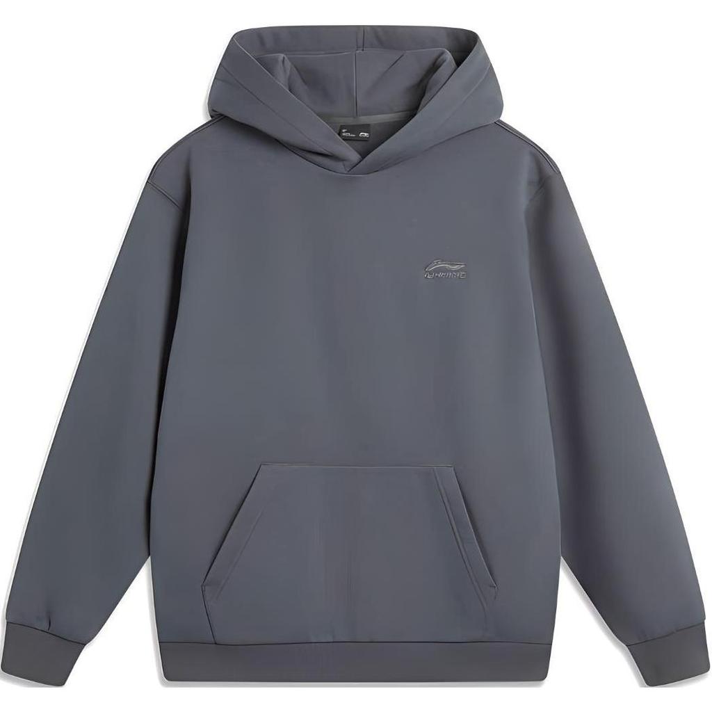 Li Ning Sports Fashion Series Solid Color Loose Hooded Warm Fleece Pullover Long Sleeve Sweatshirt Unisex sweatshirt Magnetic-Gray AWDUE95-10