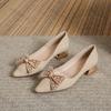 Pointed high heels thick heels women's shoes new high-end bow mid-heel large size 40-43 single shoes