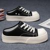 2025 Summer New Half-drag Canvas Shoes Without Heels, Lazy Person's One-foot Wear, Thick-soled, Big-headed Outerwear Board Shoes