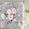Pink Floral Bath Shower Curtain Set with Personalized Name for Bathroom Decor Black Background Waterproof Fabric Customizable Si