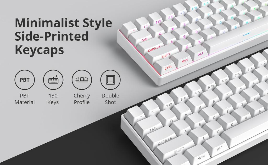 Double Shot PBT: These are double shot keycaps, so the legends on the keycaps will not fall off even after long time use. The thickness of the keycaps is about 1.3-1.5mm and they are durable. It is a good choice for those who like custom keyboards.