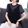 Korean New Summer Trend Slim Fit Design Print Stripe V-neck T-shirt Women's Button Breathable Fashion Casual Short Sleeved Top