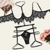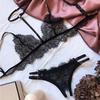 Nytt Kvinner Plus Size Blondeundertøy BH+Thong Undertøysett Svart natttøy