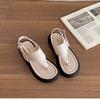 Cowhide version, minimalist temperament flip-flops retro toe flat bottom niche Roman style sandals women's summer new models