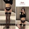 Seductive Black Silk Open Crotch Lingerie Stockings with Garter - Perfect for Midnight Passion