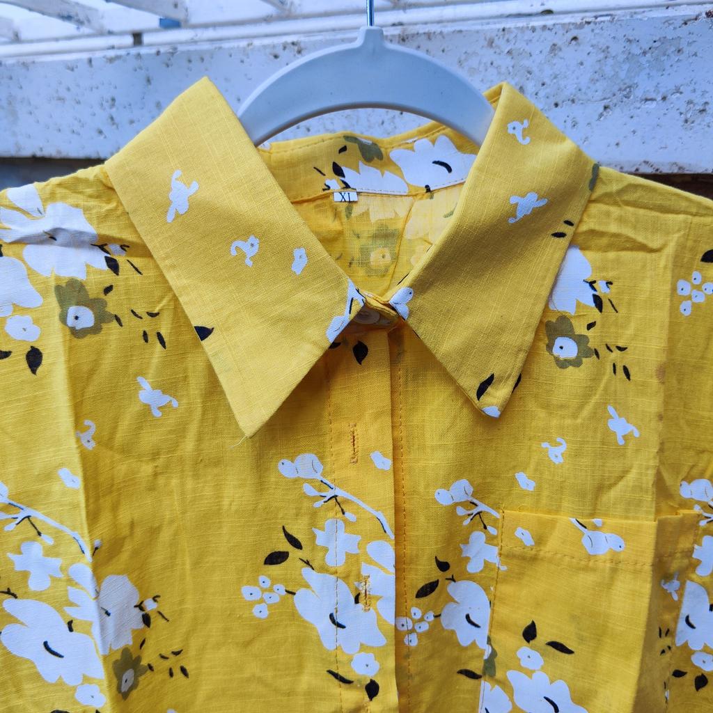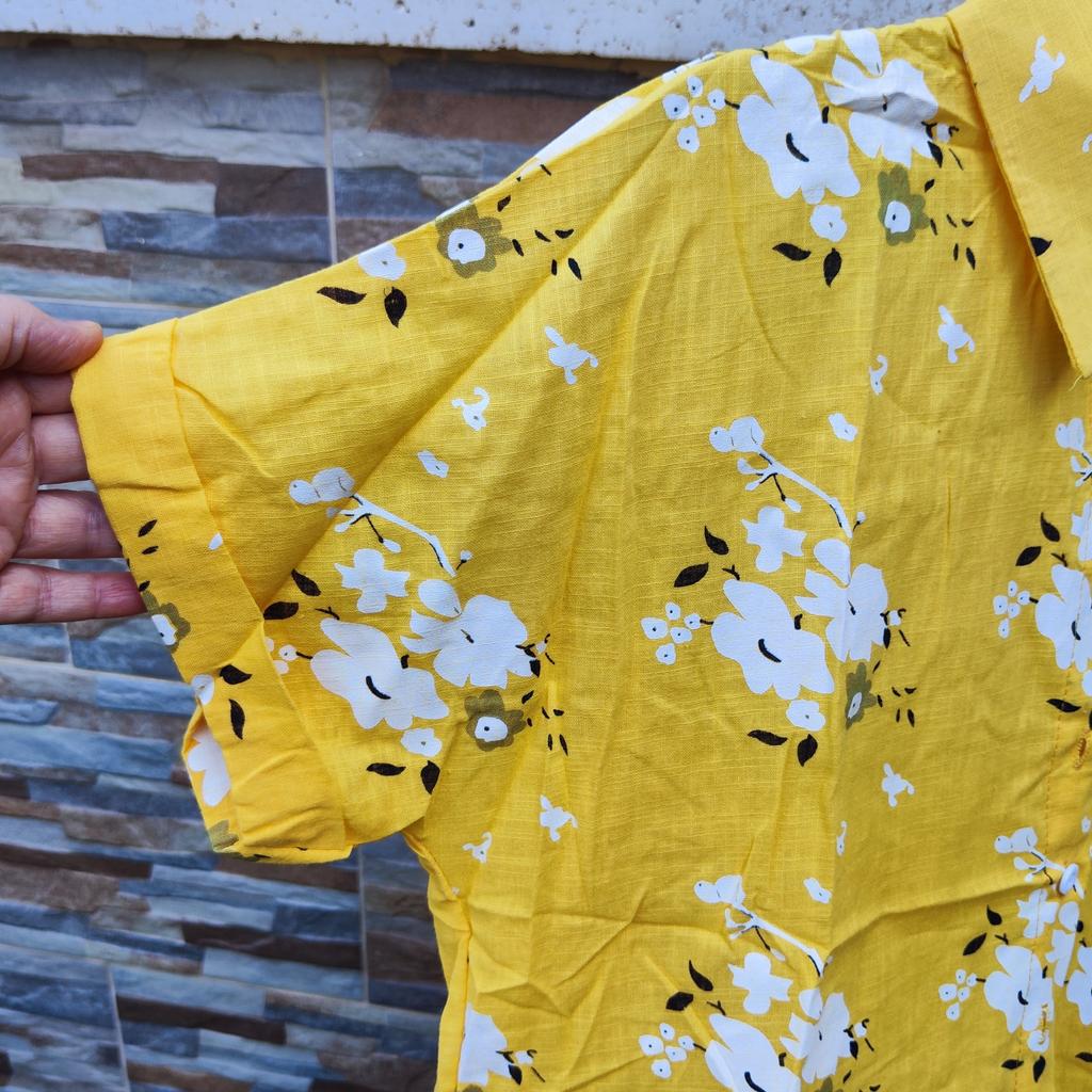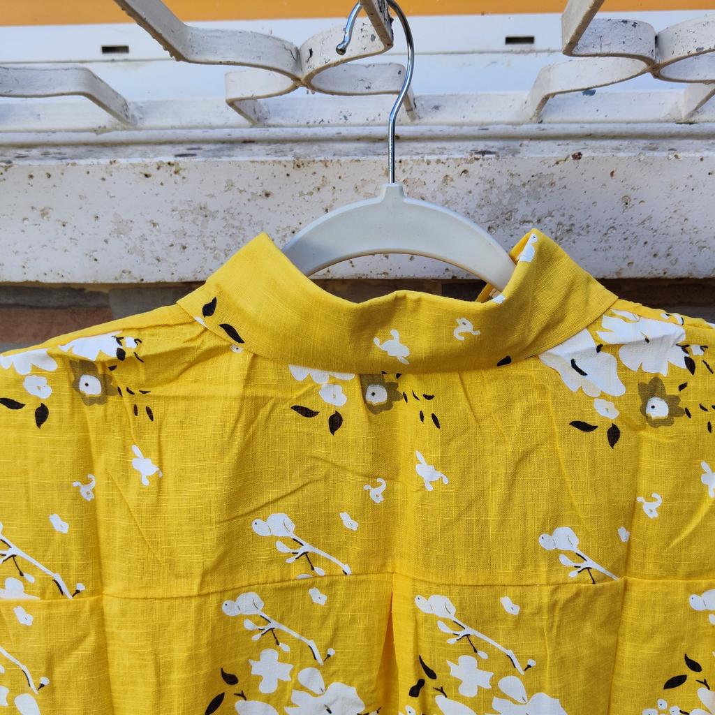 Denne sommerblusen er rett og slett min favoritt! Stoffet er laget av 100 % bomull, som føles behagelig og lett mot kroppen, akkurat det man trenger på varme dager. Designet med enkel brystlomme gir et delikat og friskt utseende, og det blomstrete trykket utstråler en morsom og fargerik sommerstemning.. Fargene – hvitt og gult er veldig fine og utstråler friskhet, passer til ethvert avslappet utseende eller til og med for en kveld ute. I tillegg er de korte ermene akkurat i riktig størrelse for varme dager, og tillater behagelig ventilasjon.. Oppsummert, en lett, vakker og komfortabel skjorte som passer veldig godt for den varme årstiden, og anbefales på det sterkeste til alle som leter etter en kombinasjon av komfort og en frisk blomsterstil..