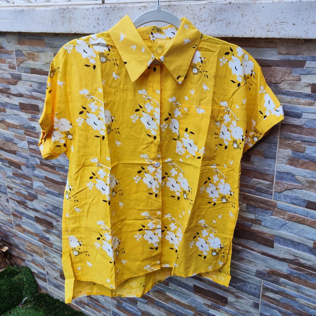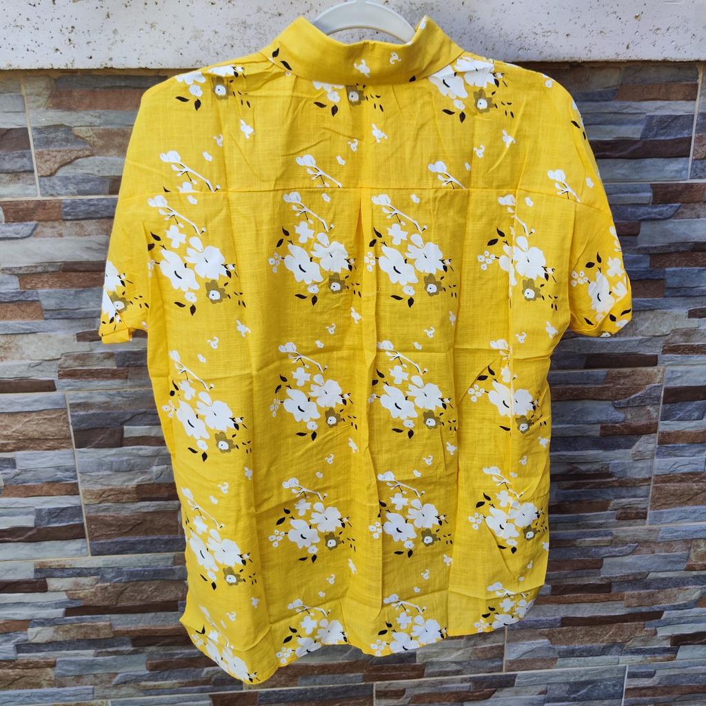 Sommerskjorte for kvinner laget av 100% bomull med en høykvalitets linsammensetning – pustende, lett og komfortabel. Prydet med et enkeltspent design og et delikat blomstermønster, tilgjengelig i fargene hvit, gul og blå. Perfekte korte ermer for de varme dagene, med et lett og friskt utseende. Passer til håndvask i kaldt vann, anbefales å tørke i skyggen og stryke på lav temperatur for å bevare kvaliteten og fargen. En skjorte som er en perfekt kombinasjon av komfort og klassisk, sommerlig stil!