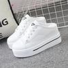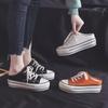 Fashion Spring Summer Women Slipper Pumps Canvas Shoes Internal-increase 8cm High Heels Solid Casual Student Outside Female Slippers