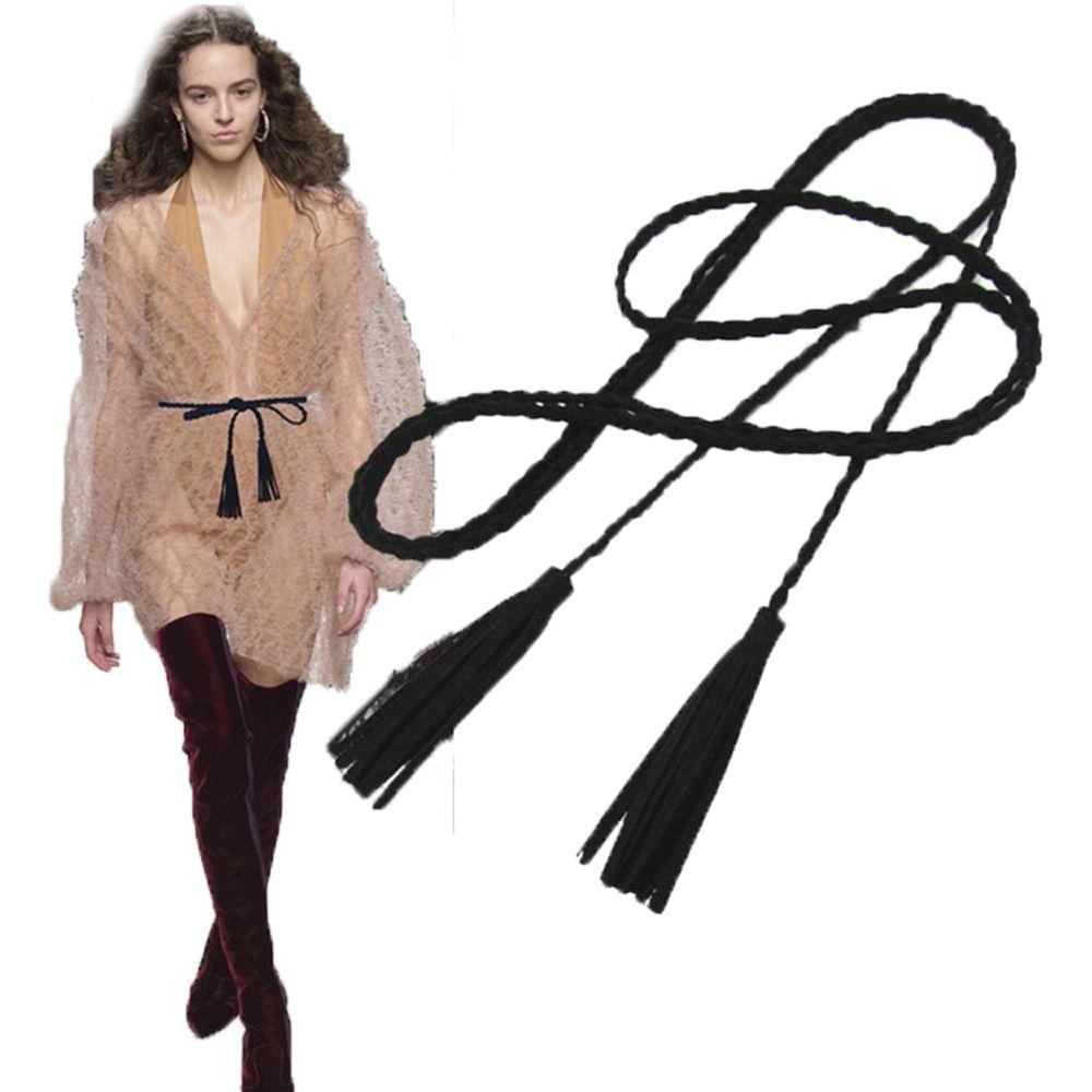 Tassel Long Bandage Belts Twist Women Braided Belts Velvet Dress Waist Rope Woven Waist Belts