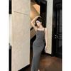 Kumikumi Pure Desire Style Sexy Gray Sling Dress Women Summer With Chest Pad Slim fit Backless Sheath Long dress