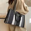 Canvas shoulder bag literary stripe large capacity student tote bag trendy fashion shopping bag