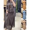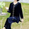 Damedesign Plussstørrelse Sett i kinesisk stil med splitt foran Mamma-passform Avslappet Rundhalset Topp + Bukser Todelt Sett