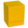 Yellow trading card deck box with sleeves, 7.3x8x10.3cm