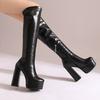Pluss Størrelse Rund Tå Høy Platå Superhøy Tykk Hæl Sideglidelås Erme Knehøye Støvler Høst Ny Elegant Og Sexy Støvler