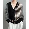 2025 Spring/Autumn Plus Size Women's Raglan Sleeve Cardigan, Color Block, Single-Breasted, Loose Knit Sweater