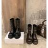 Sheepskin version~ retro belt buckle wasteland western cowboy boots round head polished short boots women's thick-soled knight boots