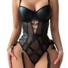 Ladies' Sexy Ribbon Spliced Backless Bodysuit Hollowed Out Bra Neck Collar And Weave Belt Intimates Women'S Exotic Underwear